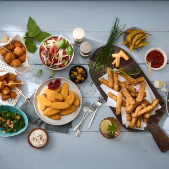 Ebenso ideal zum Dippen sind die vegetarischen Schne-frost Cauliflower Cheese Sticks. Die praktischen Sticks überraschen mit einer leckeren Kombination aus Blumenkohl und altem Gouda.