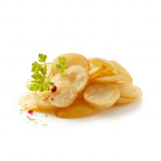 Hergestellt aus frischen Qualitätskartoffeln und Sonnenblumenöl. Bleiben länger kross und standfest. Vorgebacken und ohne zusätzliches Fett zuzubereiten.