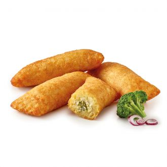 Hergestellt aus Kartoffelraspeln und einer herzhaften Füllung aus Frischkäse, Sauerrahm und Broccoli. In hochwertigem Rapsöl vorgebacken. Mit 25 % Füllung im Knuspermantel.